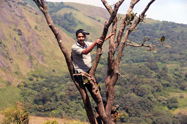 കുറച്ചു ചിത്രങ്ങള് എടുത്തതിനു ശേഷം വീണ്ടും യാത്ര തുടങ്ങി . പഴയ പോലെ ജീപ്പിന്റെ കമ്പിയില് മുറുകെ പിടിച്ചു വീണ്ടും കുറെ ദൂരം. ഇടയ്ക്കു മാട്ടുമലയിലേക്ക് പോയി തിരിച്ചു വരുന്ന ജീപ്പുകള് കാണാം. ഒരു ജീപ്പിനു വഴി കൊടുക്കാനായി മറ്റു ജീപ്പുകള് റോഡില് നിന്നും ഓടിച്ചു മാറ്റി അടുത്തുള്ള പാറയിലെക്കോ, കുറ്റിക്കാട്ടിലെക്കോ കയറ്റി നിര്ത്തും , അത് പോയിക്കഴിയുമ്പോള് അതെ വേഗത്തില് പുറകോട്ട് എടുക്കും . ആദ്യത്തെ തവണ റോഡില് നിന്നും പെട്ടെന്ന് വണ്ടി വെട്ടിച്ചു മാറ്റിയപ്പോള് ഡ്രൈവറുടെ കയ്യില് നിന്നും വണ്ടിയുടെ നിയന്ത്രണം നഷ്ടപ്പെട്ടു എന്നാണു കരുതിയത്. എല്ലാവരും ഒന്ന് വിറച്ചു നോക്കിയപ്പോളാണ് എതിരെ വന്ന വണ്ടിക്കു വഴി കൊടുക്കാനാണ് ഈ അഭ്യാസമെന്നു മനസ്സിലായത്. അങ്ങിനെ അങ്ങിനെ കുറച്ചു ദൂരം പോയി അവസാനം ഒരു വലിയ മലയുടെ ഏറ്റവും മുകളില്, ഒരു കൊക്കയുടെ അരുകില് , ഒരു പരന്ന വലിയ പാറയുടെ മുകളിലായി വണ്ടി നിറുത്തി.